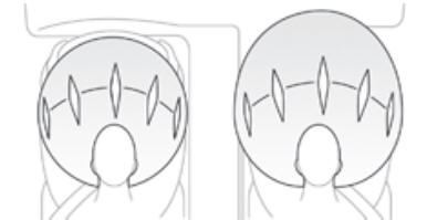 Attivazione Si attiva contemporaneamente agli Airbag laterali corrispondenti in caso di urto laterale violento applicato su tutta o su parte della zona di impatto laterale B, esercitato perpendicolarmente all'asse longitudinale del veicolo su un piano orizzontale e dall'esterno verso l'interno del veicolo.